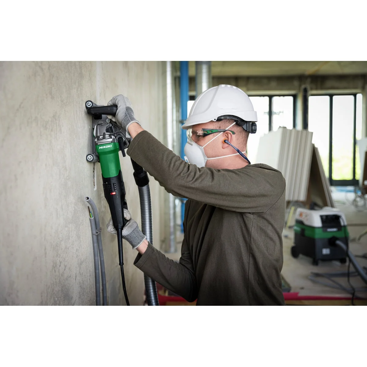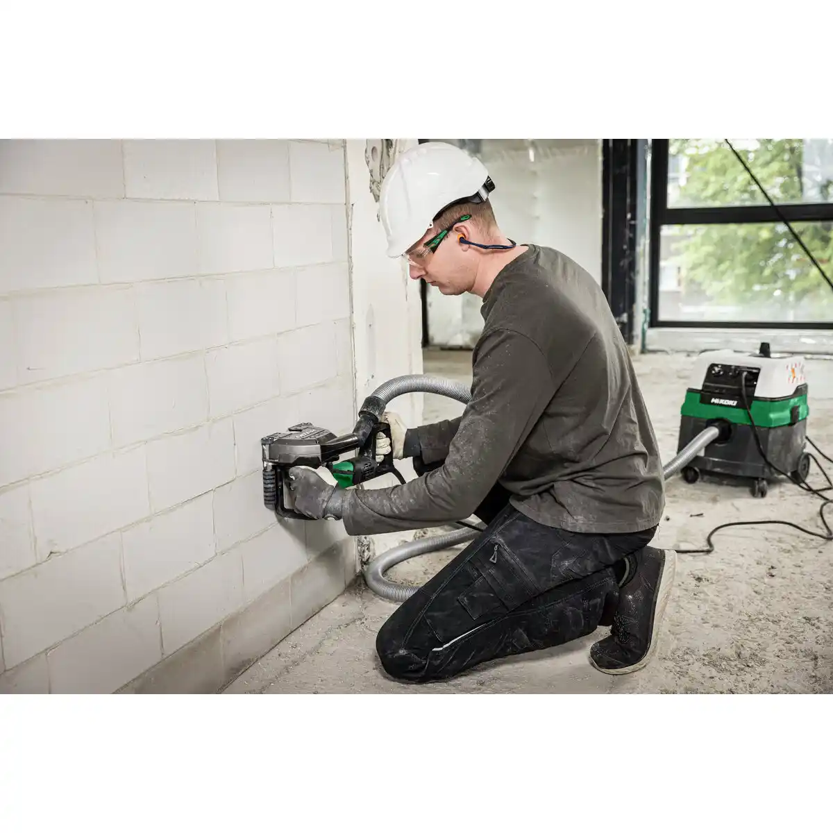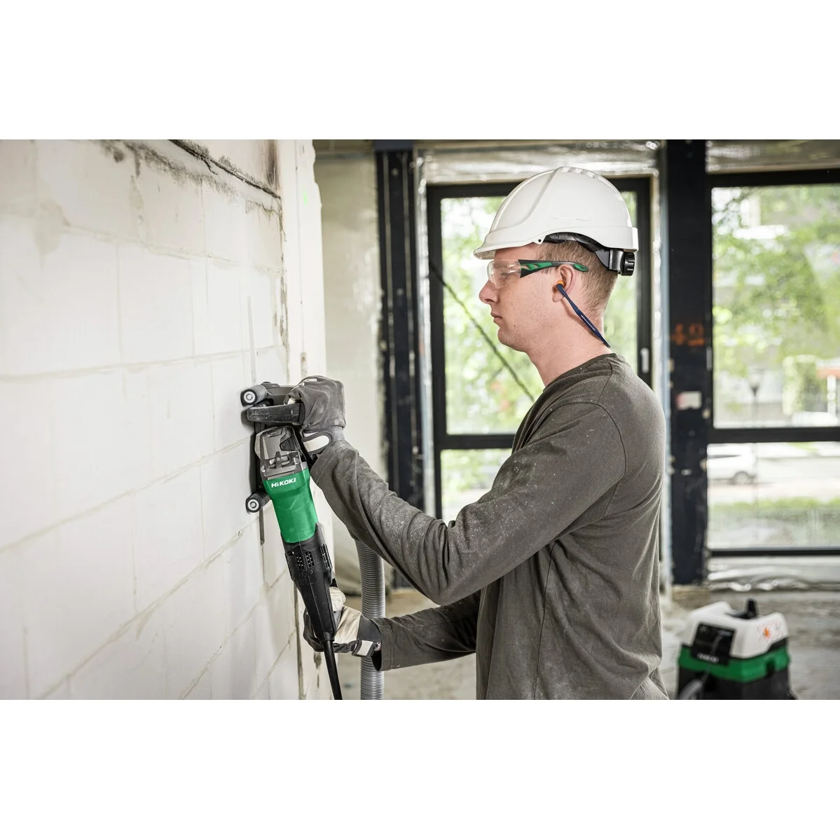 - Compatible con el accesorio opcional de fresado de diamante HiKOKI para ahorrar mucho tiempo y facilitar el trabajo sin fatiga, ya que ya no es necesario cincelar la cresta central